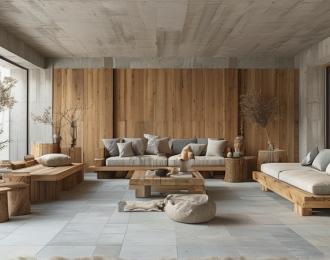 原木风与微水泥砖的完美融合:构筑温暖、治愈且充满松弛感的现代日式之家
