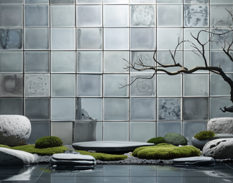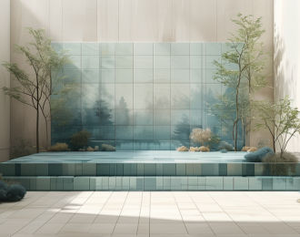 将中国水墨画意境融入空间:选择具有山水纹理的瓷砖作为主题墙。
