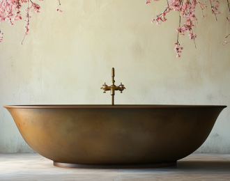 打造一个复古乡村风格的卫浴: clawfoot 浴缸与花卉图案瓷砖的经典组合