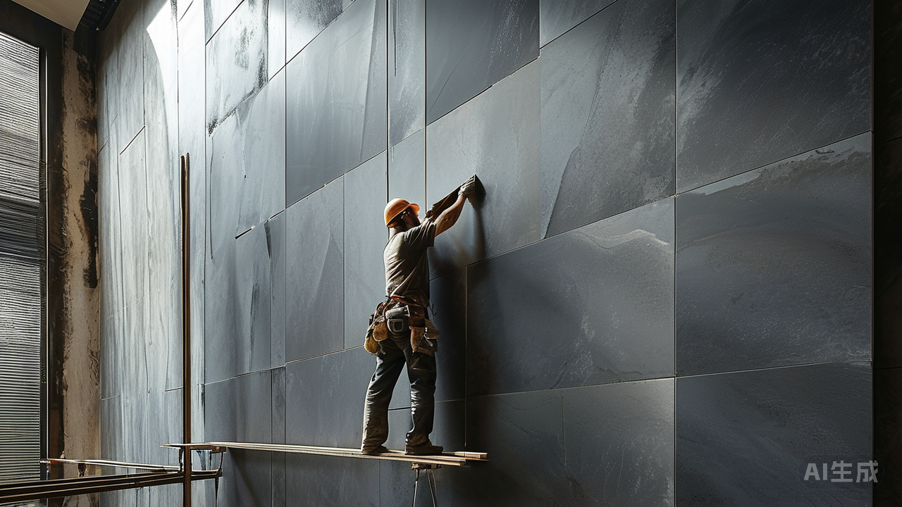 安装过程因此充满了仪式感般的谨慎。沉重的板材被缓缓抬升、精准就位后,还需倚靠临时支撑系统稳固身形,如同为易碎珍宝搭建防护支架。在这凝固的等待期里,粘结剂默默凝聚力量,直到它足以独自托举起这份沉甸甸的视觉重量。