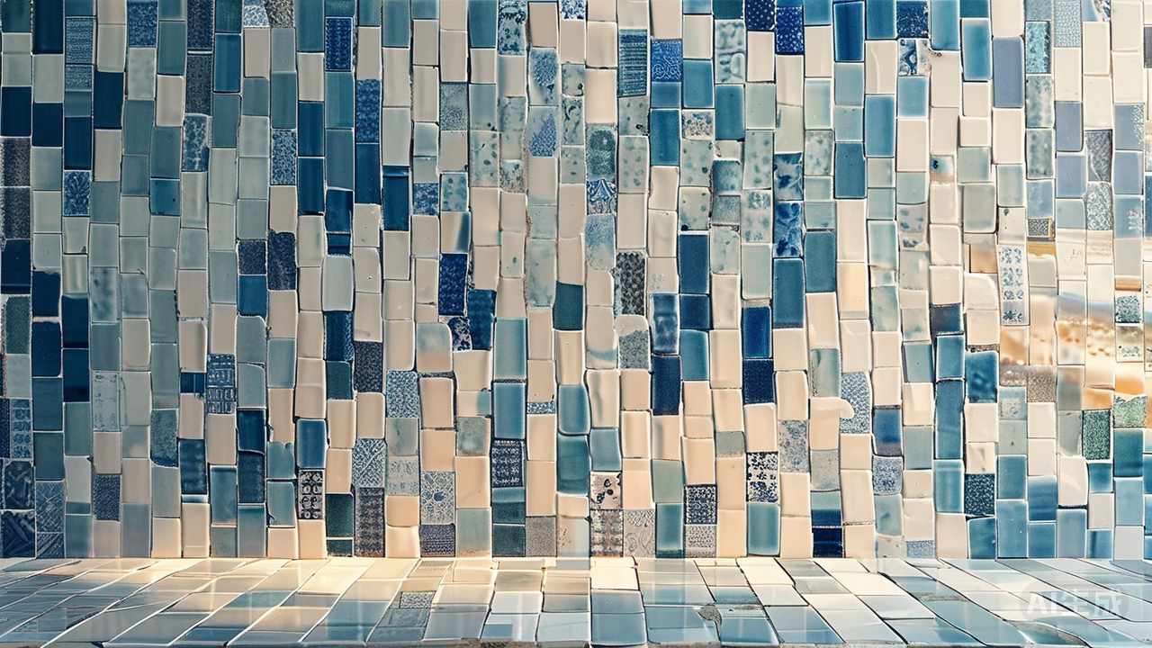 把地中海风情带回家:精选蓝白色彩与做旧质感瓷砖,打造属于你的碧海蓝天与阳光精选带有海洋气息的蓝白色彩瓷砖,深浅不一的蓝色仿佛海面与天空的渐变,搭配纯净的白色,瞬间为空间注入清新与明亮。墙面或地面铺设此类瓷砖,能立刻唤起人们对沙滩、阳光与假期的愉悦联想。 着重选择表面具有手工痕迹与柔和磨损感的做旧质感瓷砖。其不规则的边缘、细微的凹凸纹理以及温润的色泽,摒弃了工业化的冰冷,为家增添历经时光洗礼的质朴韵味与温暖触感。这种独特的质感让每一寸空间都仿佛在诉说故事。