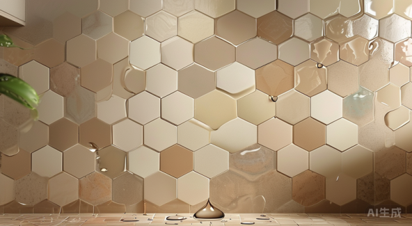 在常规铺贴中嵌入几块异形或跳色瓷砖,营造不经意的惊喜感。