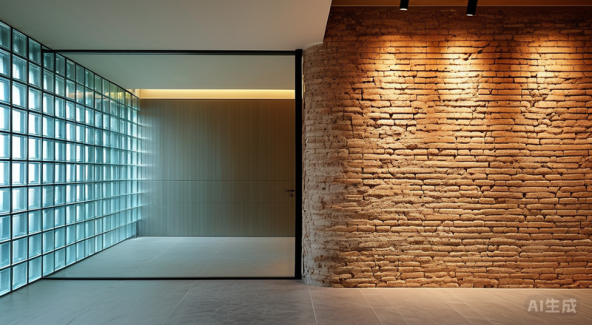 如何成功驾驭看似冲突的材质,如仿古砖与玻璃砖的和谐共处。