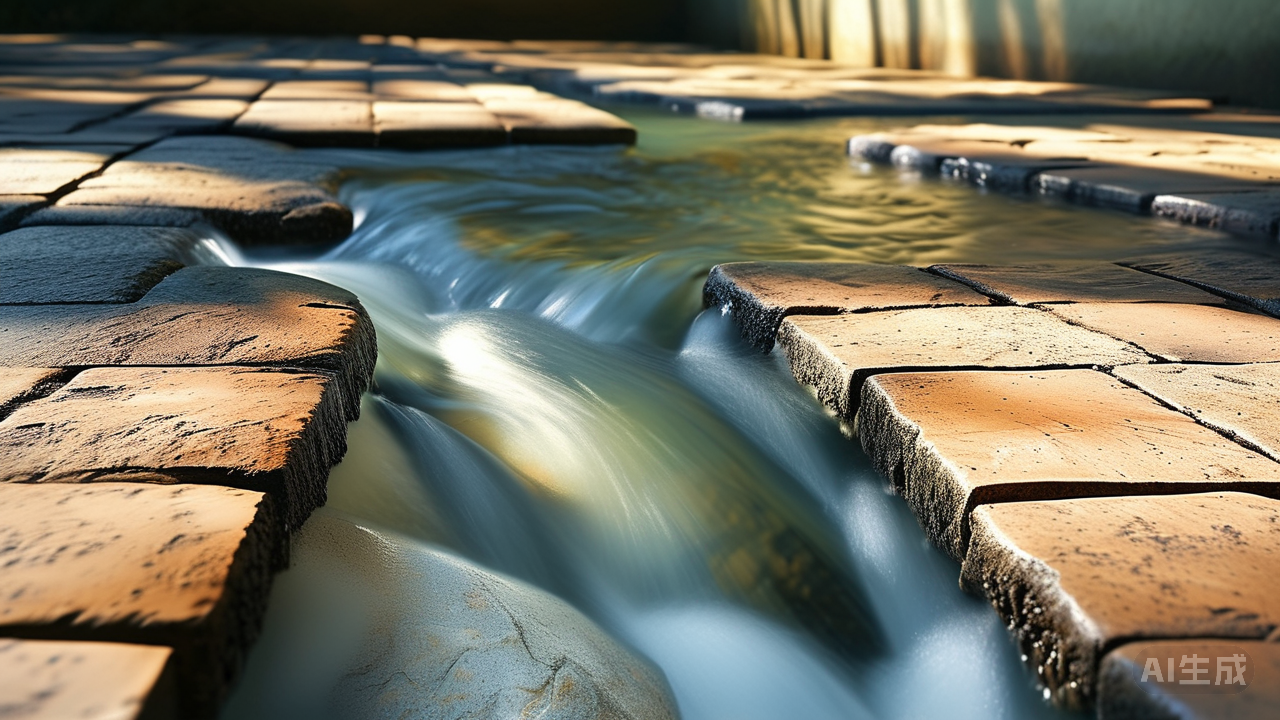 当最后一块砖嵌入,俯视脚下这片凝固的清流,水声仿佛悄然凝结于足下石面。瓷砖的凹凸纹理,在光与影的流变间,如承载着涓涓细流般波动不息。这非冰冷砖石,而是被我们以巧思凝固的一隅自然意趣。