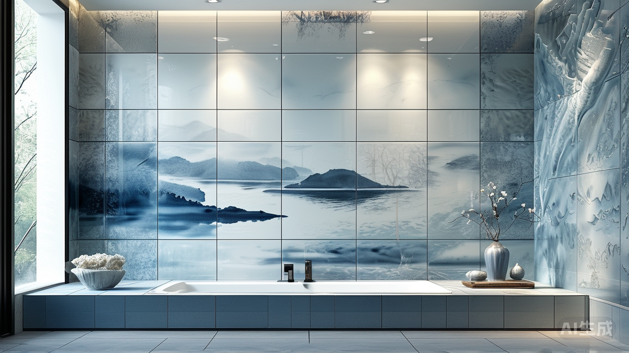 墙面呢?也正被瓷砖细细雕琢着灵魂。浴室的墙壁本是老旧的沉默者,湿气早已模糊了墙面的容颜。当带着水墨晕染效果的瓷砖贴上去,那些幽蓝与素白便在氤氲的水汽中浮动、交融,仿佛一幅永远湿润的江南画卷在光影间徐徐展开。而在客厅一隅,一面原本寂寞的矮墙上,覆盖了浮雕纹理的瓷砖,像是凝固的海浪被永久镌刻于此。光影拂过,墙面有了呼吸,有了故事的低语——老房子似乎也拥有了更深的灵魂褶皱。