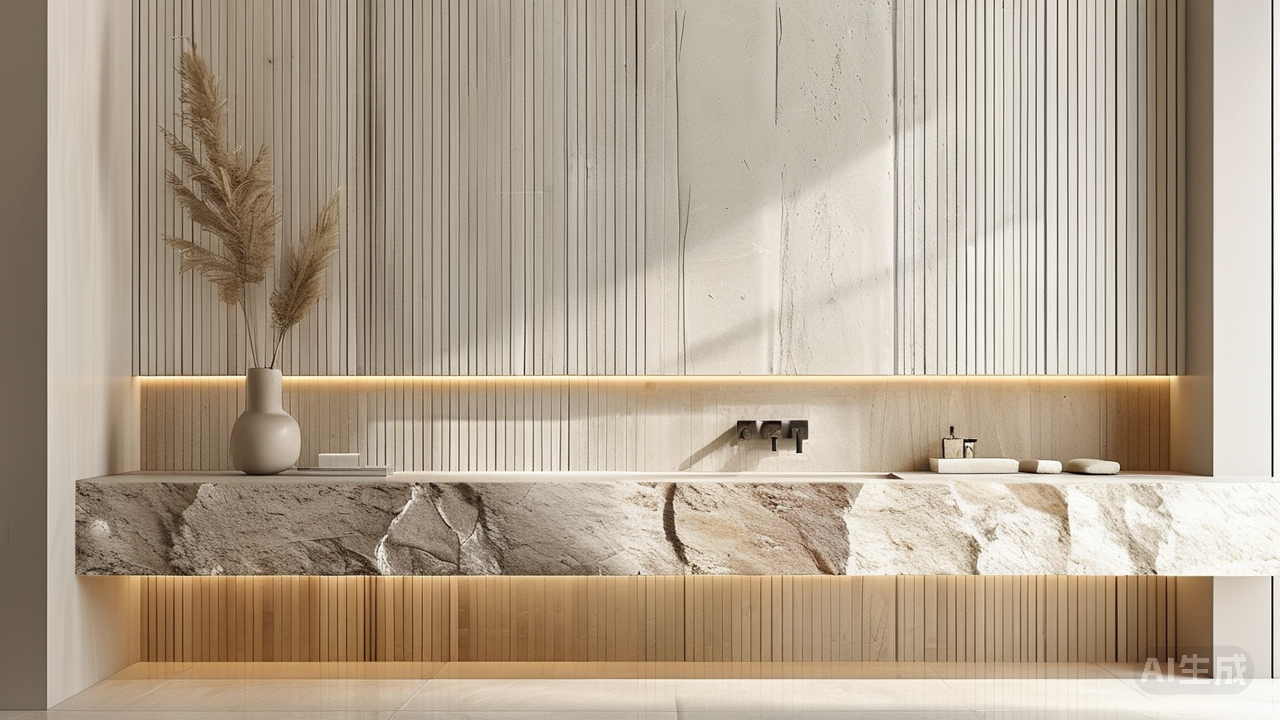 瓷砖于此间扮演着空间魔术师的角色。浅米、淡灰、柔和的奶油白,是首选基调。它们如无形的手,悄然推远墙壁,令局促空间呼吸顺畅。若想再添一丝挺拔意境,竖向铺贴的条形砖便成绝佳搭档。那流畅的线条如竖琴之弦,轻轻将视线向上牵引,无声地拉伸了空间的垂直线条,层高仿佛因此抬升一寸。台面之上,不妨择一块纹理细腻、色彩温润的岩板,既形成视觉焦点,又方便日常擦拭,实用与美感巧妙相融。