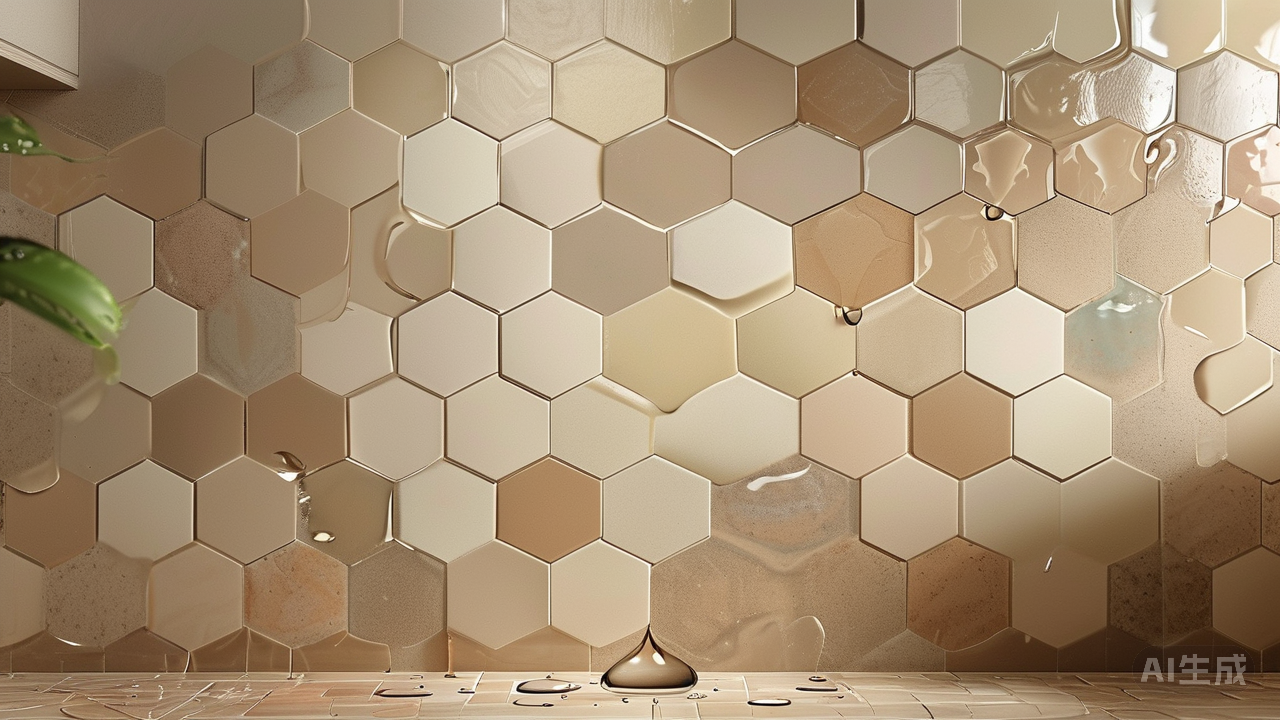 在常规铺贴中嵌入几块异形或跳色瓷砖,营造不经意的惊喜感。日常所见的地面,多少铺展着整齐的磁砖。规整的线条,均匀的色调,是沉默的秩序,也是无言的底色。然而,在设计师慧心流转之处,便常在这样齐整的方阵里,悄然埋下几处意外的音符——那是几枚异形砖或跳色砖,只为捕捉目光那一瞬的停顿与惊异。 若说寻常铺贴是一曲舒缓的轻奏,那么这零星的异形砖便如旋律中偶被拨亮的跳音。无需张扬阵列,更不必喧哗陈列,它们只是静静地嵌落在寻常行列中。也许在玄关几块工字拼的米白砖海里,突兀而意外地现出两三片六角形,边缘被磨得温润,像是悄然自海底浮出的宝石;又或者,在厨房操作台下的转角处,原本深灰的砖缝里,忽然绽开一朵釉面玲珑的叶片形彩砖,正巧在俯身拾物或转身的刹那,撞入眼帘。行走之间,脚下突然踩到形状微妙的凹凸处,那并非差错,而是一枚水滴形瓷砖的邀约——脚步于此轻轻一顿,心随形动,嘴角便悄然牵起。