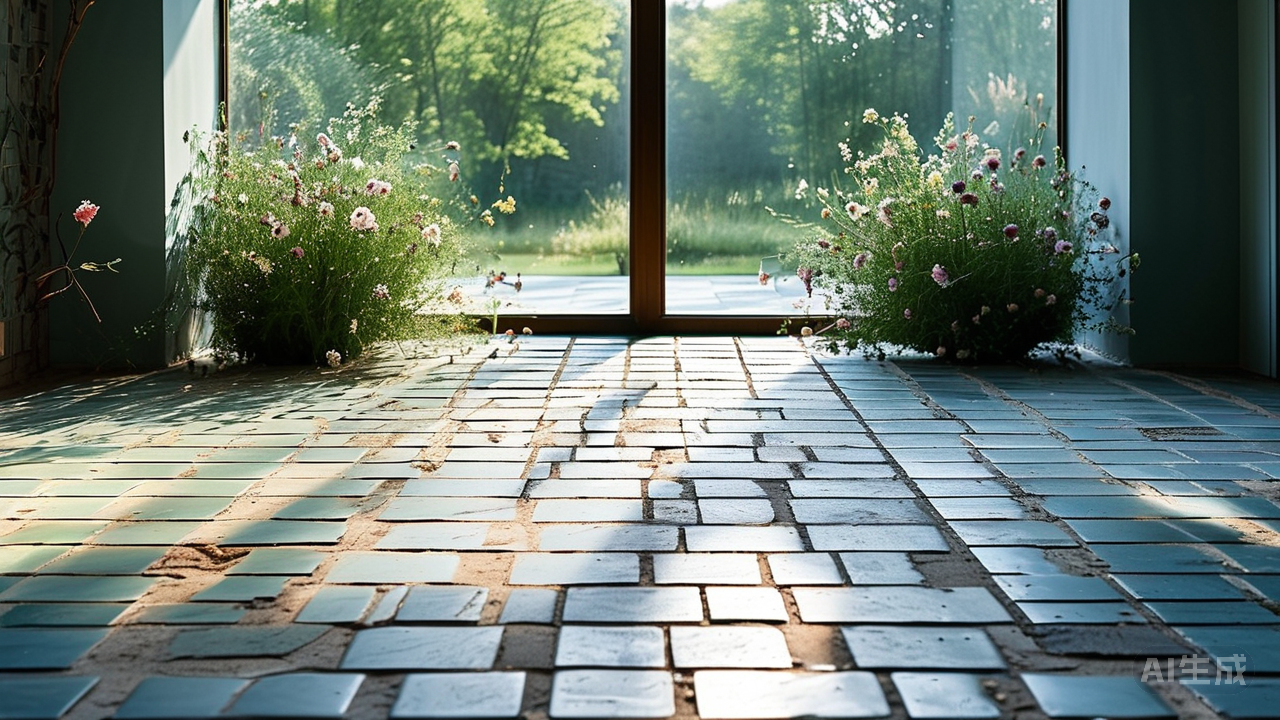 **材质肌理的差异,更赋予空间一种可触摸的区分。**厨房的操作区墙面上,光洁的釉面砖像一道实用主义的盾牌,轻松抵御着油渍水痕。而几步之遥的休闲小吧台区域,手触之处却是粗粝陶土砖的朴拙与天然。质感的变化形成一种无形的心理边界,指尖触及之处,便是不同生活场景的悄然分野。 **铺贴方式的智慧,能引导空间节奏的流动与停顿。**玄关入口处,菱形斜铺的小花砖如一枚精致的空间逗点,提示着内外转换的仪式感。随之视线放远,通体流畅的纵向长条砖一路指向视野尽头的落地窗,空间被视觉拉伸,宁静感在延伸中沉淀。铺法的改变,便是空间情绪无声的断句与承接。