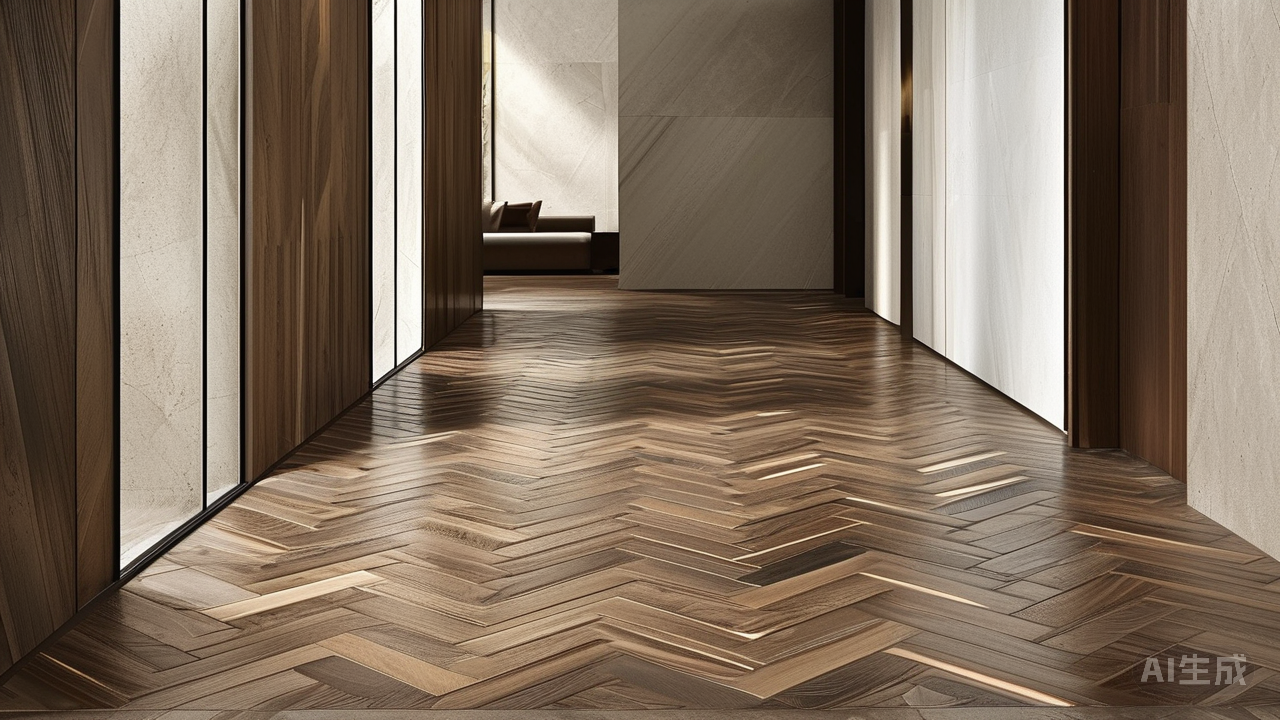 而鱼骨拼,则以其更精密的几何构型诉说着雅致。它要求每一块砖的两端预先切割成特定的锐角斜面,而后以精确的45度倾斜角度严丝合缝地首尾咬合。拼贴完成的地面,呈现出酷似鱼脊椎骨般紧密连贯的锐利折线,纵向如行云流水般延伸,在光线下折射出深邃而充满秩序的立体美感。这种优雅的连续斜纹,天然带有一种古典的贵族气息,与法式轻奢、复古南洋风或精致简约的空间气质浑然天成。当温润的木纹砖采用鱼骨拼时,其流动的线条仿佛拥有了生命,在光影下流淌着静谧而奢华的质感。