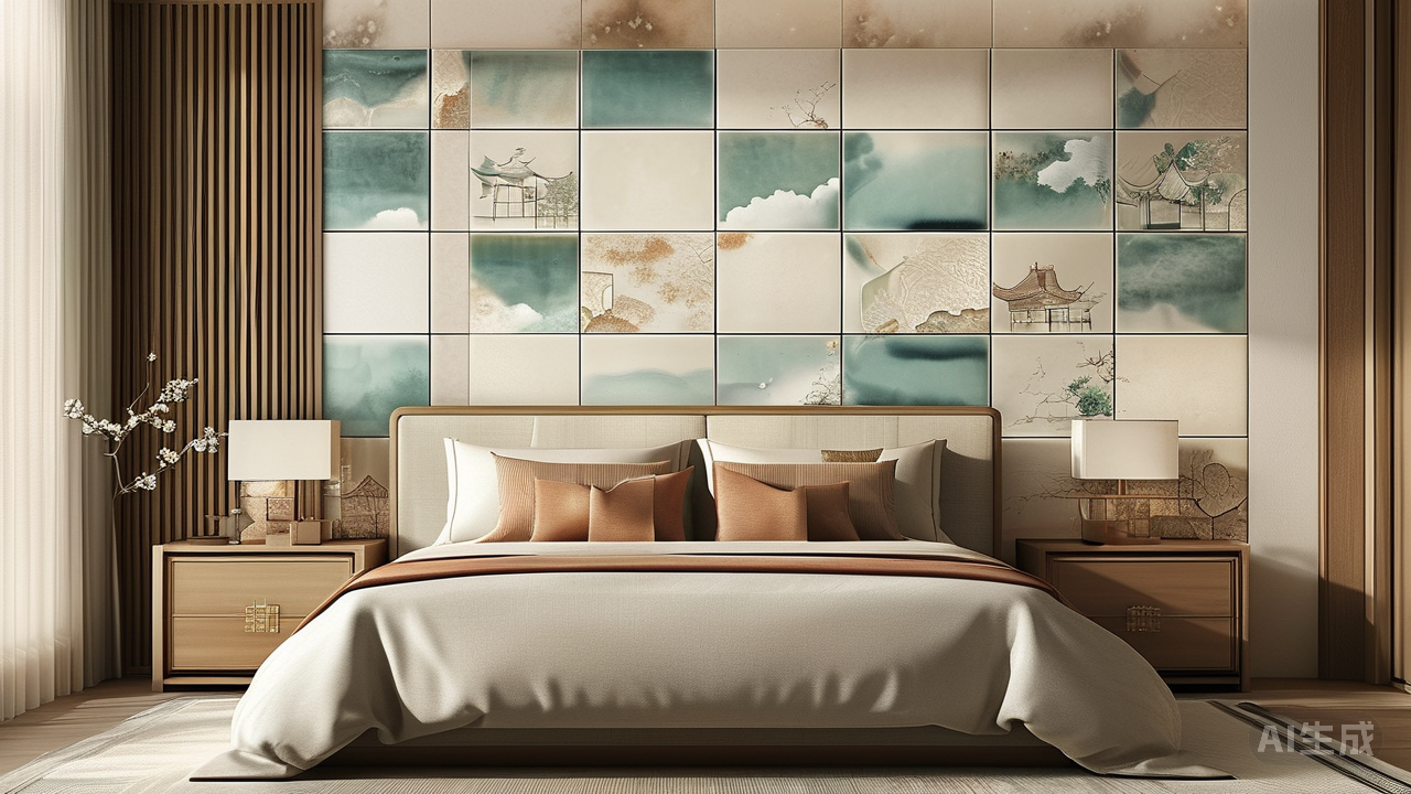 色彩搭配同样重要,新中式偏爱中性色调如米白、灰褐或淡青,瓷砖的色彩应与之协调,避免过于鲜艳或对比强烈,以免分散休息空间的宁静感。同时,材质的选择影响着实用性和舒适性,卧室是休憩之所,瓷砖需具备防滑、易清洁的特性,陶瓷或仿大理石材质既能体现传统质感,又确保日常使用的安全与便捷。此外,光线因素不容忽视,自然光或暖色调灯光下,云纹和回纹的纹理会呈现微妙变化,因此在实际铺贴前,应模拟不同光照条件,确保纹样在昼夜中都能传递出柔和而富有深意的美感。