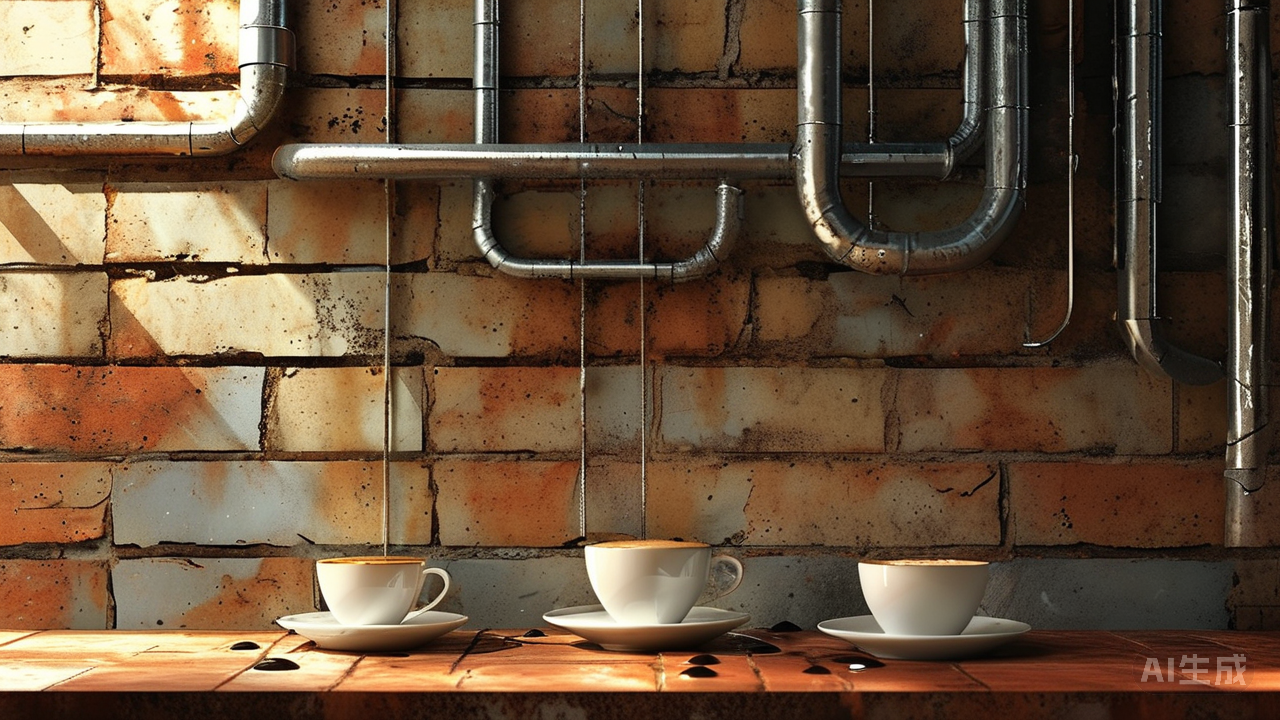 砖石的粗犷若缺了冷峻金属与温润木材的应和,终显单薄。锃亮的管线在斑驳墙面恣意游走,如同理性与野性的和弦;几块厚拙的旧木横陈其上,顿生暖意与平衡。光线泼洒于凹凸砖面,便投下深深浅浅的沟壑与光斑,仿佛时间本身在空间中起舞、凝固。
