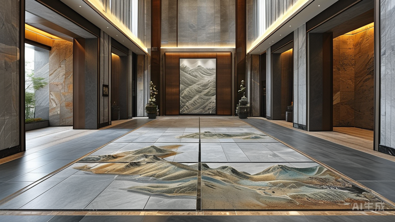 品味之深,常流露于细节的无声处。当瓷砖的纹理如乐章般延伸至墙面,天地之间便有了呼应——这并非刻意的复制,而是空间节奏的微妙回响。于玄关处、或厅堂中心,一道细细的金属嵌线悄然嵌入地面,其光泽内敛如墨玉,不喧哗却自有力量,仿佛为空间锚定了一个沉静的视觉支点。若有楼梯沿阶而下,梯沿收口处砖石与踏板的相遇,若处理得如精工镶嵌般严丝合缝、过渡自然,那细微处的工巧便似低吟浅唱,无声地诉说着主人的执着与讲究。