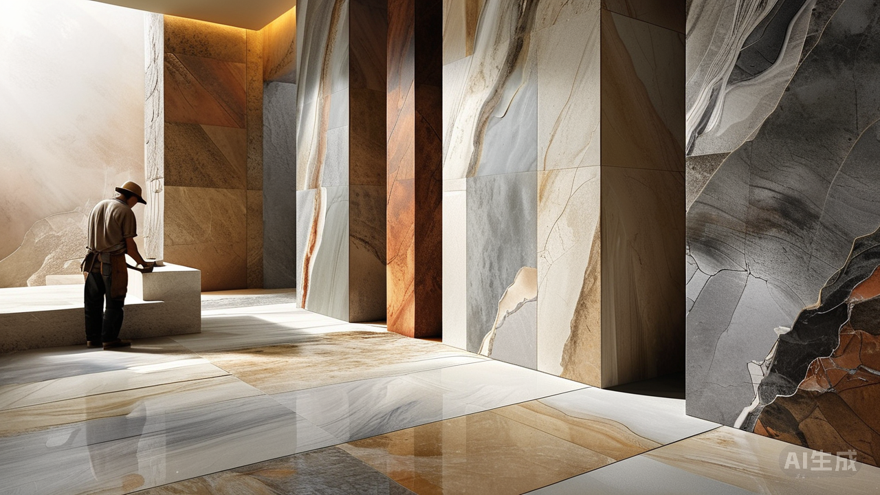 仿石材瓷砖的搭配艺术:如何还原天然石材的奢华与自然质感?奢华与自然质感,这两种看似相悖的气质,竟在天然石材身上浑然天成。然而,如今仿石材瓷砖却悄然间披上石之华裳,以其科技之力,将这份大地馈赠的尊贵与原始之美,重新织入日常人居的经纬之中。 在追求那石之灵魂的关键处,纹理的逼真程度首当其冲。上乘的仿石材瓷砖,其表面肌理绝非呆板模仿。它深谙天然石材那变幻莫测的纹理之道——或如流水蜿蜒,或似云影浮动。精密的数码喷墨和模具复刻技术,让每一片瓷砖都如自然造物般独一无二。肌理凹凸之间,光影流转其上,悄然映照着天然石面那历经岁月磨洗的质感神韵。它们拒绝千人一面,每一寸都述说着大地无声的呼吸与律动。