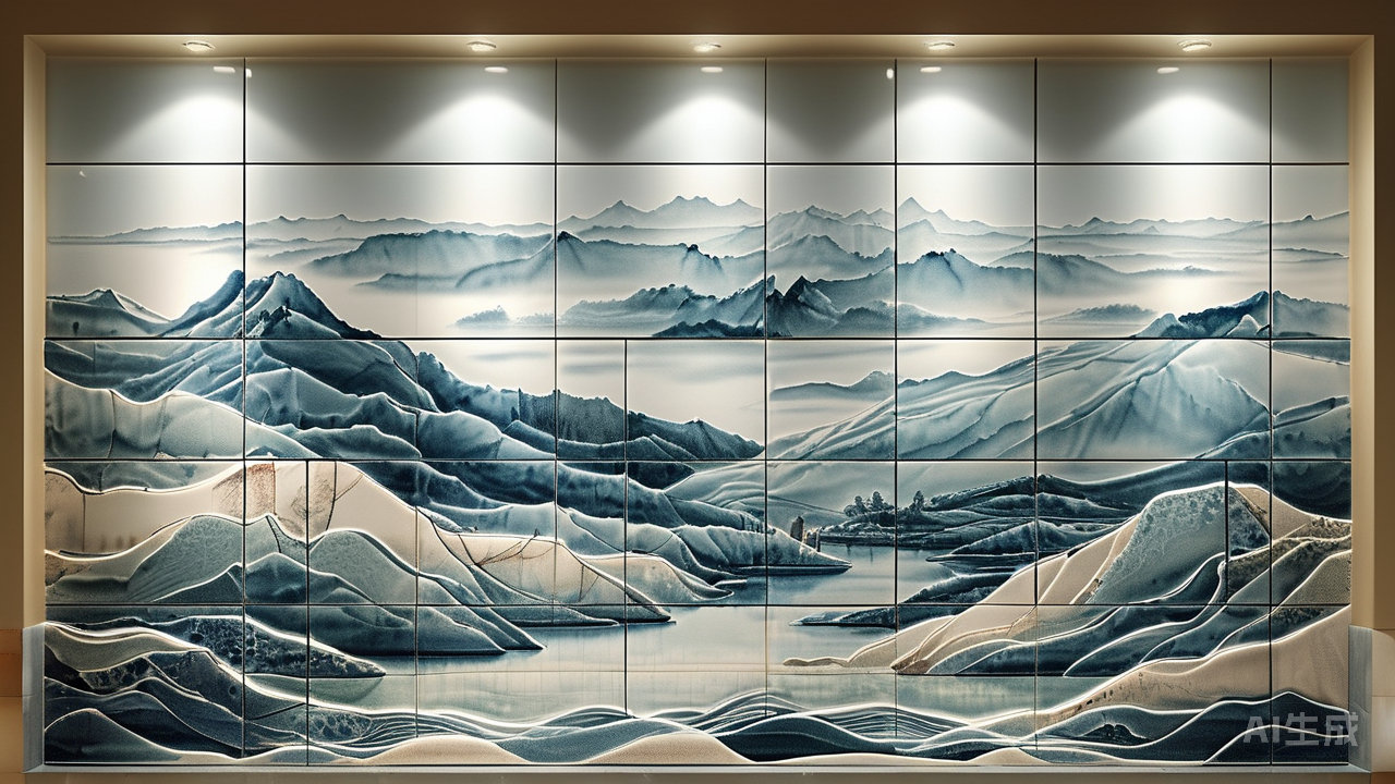 将这一片片石之幻影铺陈于空间,更考验着对自然的理解和尊重。宽阔的空间可接纳大气磅礴的石纹铺陈,仿若巨幅泼墨山水,气势恢宏;而精致小处则需精选纹理细腻者,如同工笔勾勒,更添雅致。更妙的是,通过不同纹理走向、深浅变化的瓷砖进行巧妙的拼接,能在空间中自然生成一种视觉的流动感。转折处纹理巧妙呼应衔接,宛如山脉绵延不断,似泉水蜿蜒流淌,于方寸之间勾勒出自然的节奏与空间的脉络。铺贴时对留缝宽窄的匠心、对纹理方向排列的拿捏,皆是对大地气韵的默默承袭与尊重。
