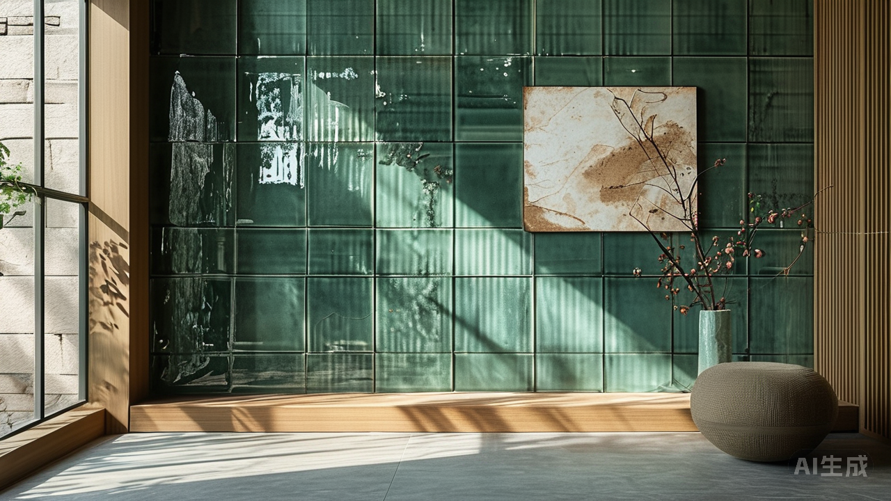 或许你会犹豫:彩色,是否过于张扬?是否会显得杂乱?其实,高级的色彩运用,从来不是喧闹的呐喊,而是自信的低语。关键在于“和谐”而非“泛滥”。想象一下,在客厅一面素净的沙发背景墙上,铺贴起一片沉静的墨绿色手工釉面砖,那深邃的色泽仿佛雨后的森林,带着细腻的、每片都独一无二的纹理。当午后的阳光斜斜洒落,砖面会泛出温润的光泽,整个空间瞬间被赋予了一种戏剧般的质感与深度。这并非破坏宁静,而是将自然的静谧与艺术的雅致请进了家门。